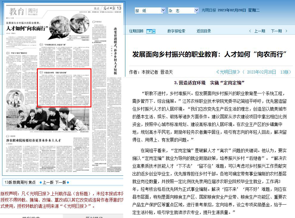 日前,【光明日报】刊发文章“发展面向乡村振兴的职业教育:人才如何‘向农而行’”。就“营造适宜环境 实施‘定岗定编’”方面专访我院党委书记简祖平。