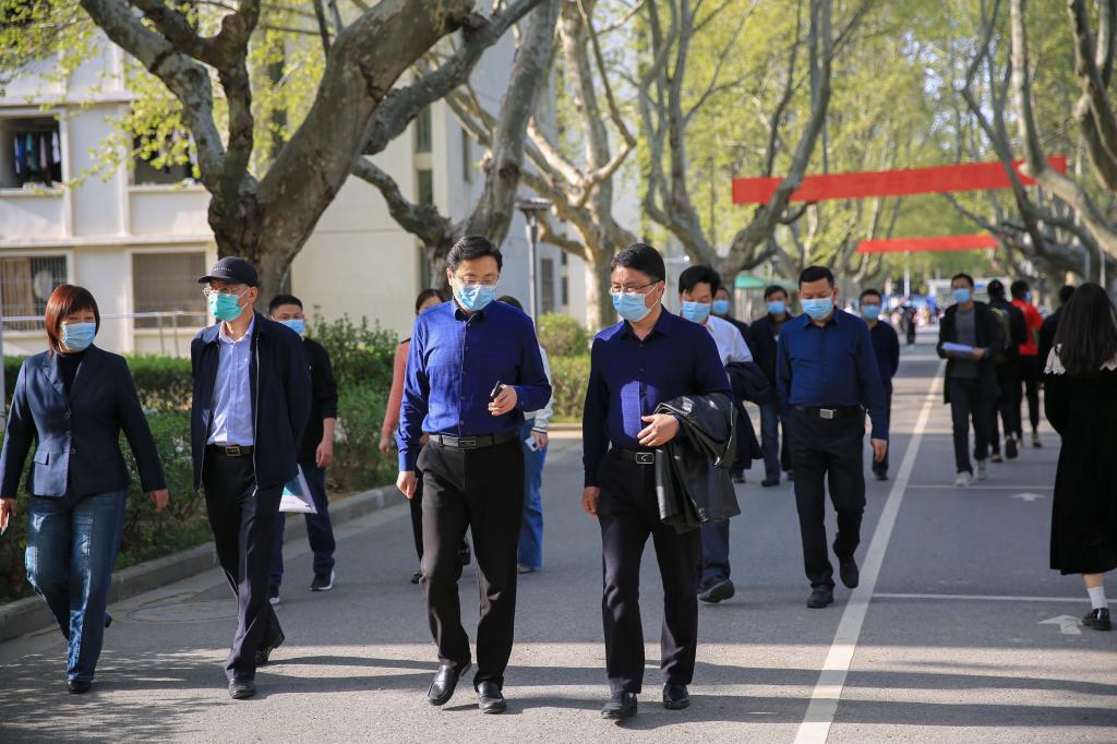 4月6日下午,镇江市委教育工委副书记、教育局党委副书记朱定明带领在镇高校疫情防控工作督查组一行8人,来我院督查疫情防控工作。督查组由镇江市委教育工委、镇江市教育局、镇江市卫生监督所、镇江市餐饮安全监督所、句容市教育局、句容市公安局和句容市卫健委卫生监督所相关人员组成。学院党委书记巫建华,党委副书记、院长简祖平,副院长贾君,各疫情防控工作组负责人参加了督查活动。