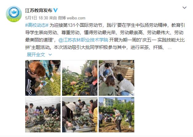 【江苏教育发布】微博报道我院校园活动