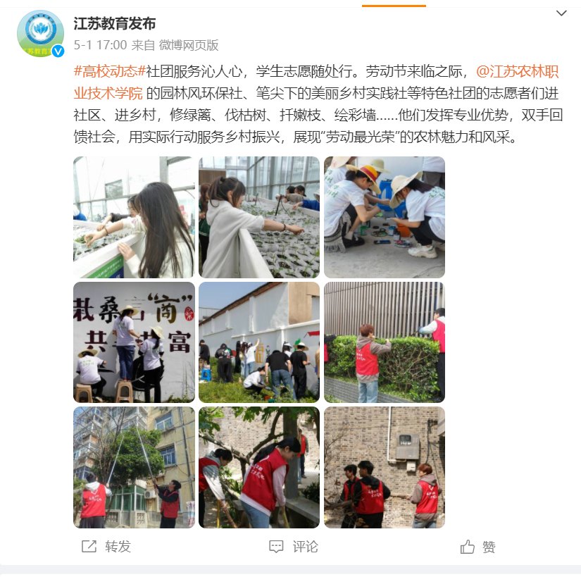 【江苏教育发布】微博报道我院志愿服务活动