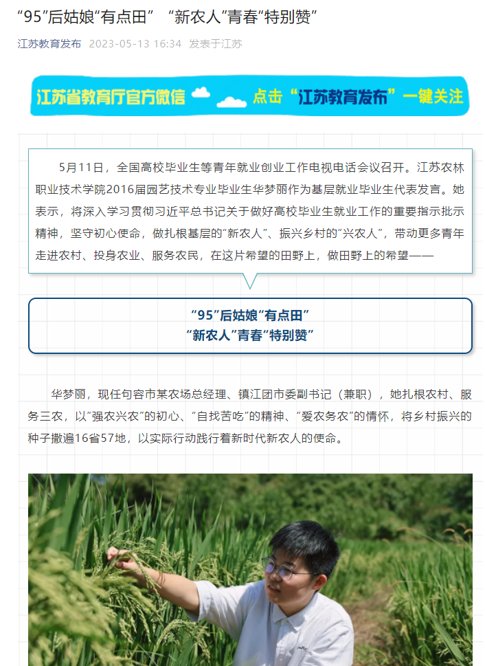 【江苏教育发布】微信专题报道“95”后姑娘“有点田” “新农人”青春“特别赞”