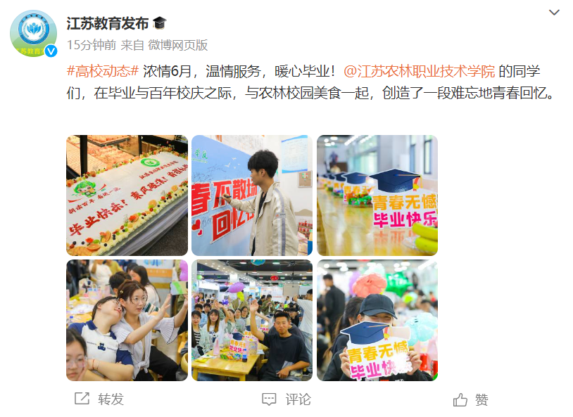 【江苏教育发布】微博报道我院毕业季活动