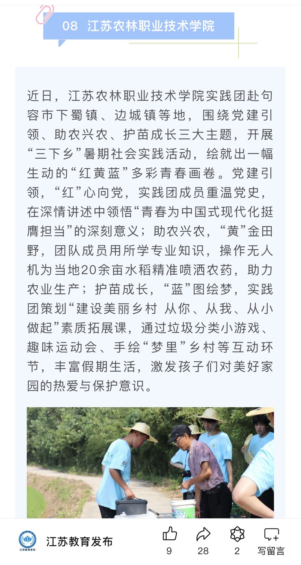 【江苏教育发布】微信报道机电工程学院暑期社会实践