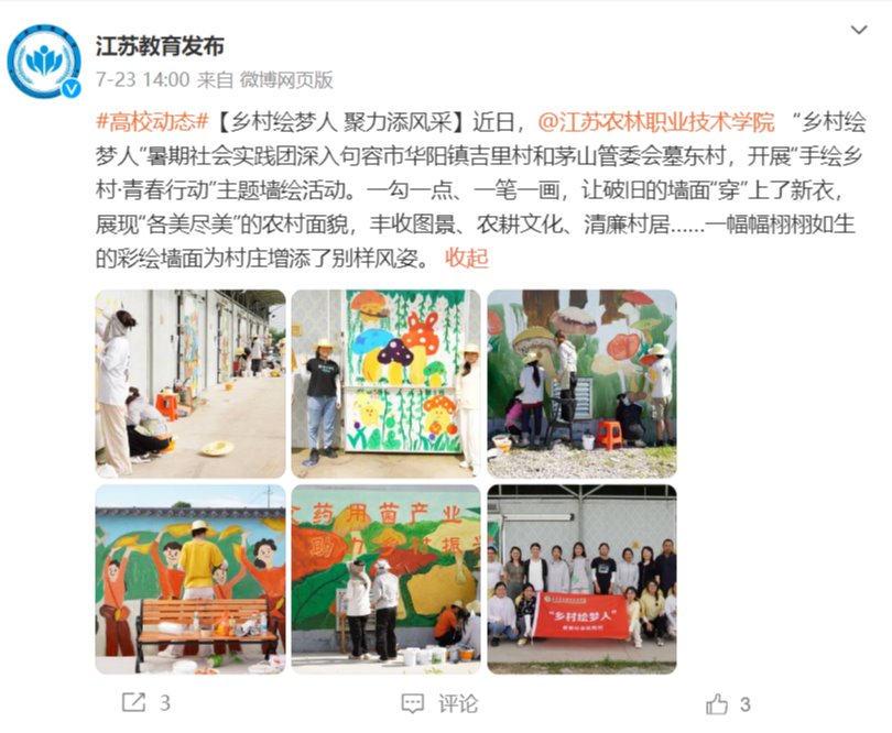 【江苏教育发布】微博报道茅山校区“乡村绘梦人”暑期社会实践